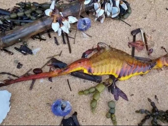 1 / 8समुद्रात हजारो चमत्कारिक आणि रहस्यमय असे जीव असतात. यातील फार मोजकेच आपल्याला बघायला मिळतात. वेगवेगळ्या जीवांसोबतच समुद्रात खोलवर अनेक दुर्मीळ वनस्पती आणि वस्तूही असतात. समुद्रात होत असलेल्या हालचालींवर संशोधन सतत नजर ठेवून असतात. 2 / 8समुद्री जीवांवर रिसर्च करणारे संशोधक दररोज दुर्मीळ जीवांचा शोध घेत असतात, जे बघून हैराण व्हायलं होतं. नुकताच समुद्र किनारी असाच अनोखा जीव आढळून आला. ज्याला बघून तुम्हीही थक्क व्हाल. (Image Credit : animals.net)3 / 8ऑस्ट्रेलियात रिकॉर्ड पावसानंतर समुद्र किनारी अनेक अजब जीव बघायला मिळत आहेत. न्यू साऊथ वेल्समध्ये समुद्री तटावर काही असे मासे दिसले ज्यांना बघून स्वत: संशोधकही हैराण झालेत. पावसानंतर समुद्र किनारी सीड्रॅगन क्रोनुल्ला, मालाबार आणि सेंट्रल कोस्टमध्ये ही जीव दिसून येत आहेत. जे जीव खोल समुद्रात राहतात.4 / 8टेक्नॉलॉजी यूनिव्हर्सिटी सिडनीमध्ये समुद्रावर अभ्सास करणारे डॉ. डेविड बूथ यांनी हे जीव आढळून आल्याबाबत माहिती दिली. ते म्हणाले की, हे जीव हैराण करणाऱ्या वातावरणामुळे समुद्र किनारी आले असतील. (Image Credit : portlincolntimes.com.au)5 / 8त्यांनी पुढे सांगितलं की, हे मासे आढळून आल्याची कारणं प्रदूषण आणि उंच लाटा असू शकतात. सर्वात आश्चर्याची ही बाब आहे की, ऑस्ट्रेलियाच्या समुद्रात नेहमीच हे जीव दिसतात आणि ते त्यांच्या घरातच राहतात.6 / 8समुद्र किनारी हे जीव दिसणं एक असामान्य घटना आहे. हे त्यांच्या आजूबाजूच्या केवळ ५० ते ५०० मीटर भागातच फिरतात. ऑस्ट्रेलियाच्या किनाऱ्यावर आढळून आलेल्या या जीवांना सीड्रॅगन म्हणून ओळखलं जातं. हे वेगवेगळ्या रंगांचे असतात आणि त्यांचा जांभळा-पिवळा रंग आकर्षक दिसतो7 / 8सीड्रॅगनची लांबी ४५ सेमी इतकी असते. हे खडकांखाली लपून राहतात. त्यांचा संबंध सीहॉर्स प्रजातीसोबत आहे. याआधी ब्रिटनमध्ये डायनासॉरचा शोध घेणाऱ्या वैज्ञानिकांनी सांगाडा मिळाला होता. 8 / 8वैज्ञानिकांनी ऑस्ट्रेलियातील मिडलॅंड भागात १८ कोटी वर्ष जुना समुद्री ड्रॅगनचा सांगाडा शोधला होता. ब्रिटनच्या इतिहासात या शोधाला सर्वात महान जीवाश्म शोध म्हटलं गेलं होतं. याआधीही ऑस्ट्रेलियात अनेक हैराण करणारे जीव आढळून आलेत.