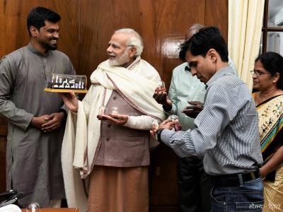 सचिनने नुकतीच पंतप्रधान नरेंद्र मोदींची भेट घेतली आणि त्यांना एक भेटवस्तु दिली. ती लहानशी पण सुंदर आणि सुबक भेटवस्तु होती एक उत्कृष्ट कलाकृती. त्याने एका खडुवर नरेंद्र मोदींची प्रतिमा कोरली आहे. त्यातील बारकावे इतके सुंदर आहेत की पाहताच मोदीजी खुश झाले.