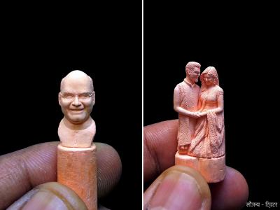 इतकंच नव्हे तर त्याने राष्ट्रपती रामनाथ कोविंद यांचाही चेहरा या खडुवर कोरला आहे. त्याच्या या कलेतील परफेक्शन पाहून तो खडु आहे यावर विश्वासच बसत नाही. तसंच विराट आणि अनुष्काच्या मान्यवर मोहेच्या जाहिरातीतील एक फोटोही त्याने कोरला आहे. त्यातही दोघांच्या चेहऱ्यावरचे हावभाव अप्रतिम रेखाटले आहेत.