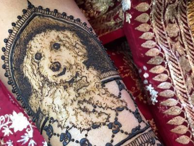हातावरील मेहंदीवर नवऱ्याच्याऐवजी काढलं लाडक्या कुत्र्याचं चित्र