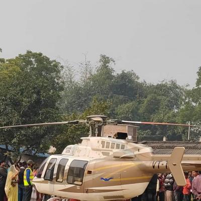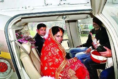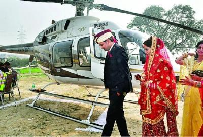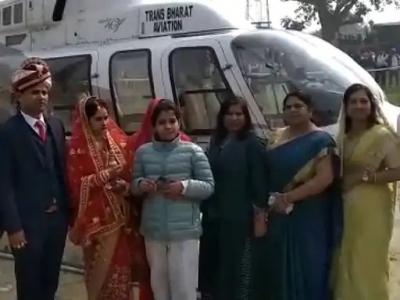 शनिवारी सकाळी ११ वाजता मुलीच्या वडिलांनी तिला हेलिकॉप्टरमध्ये बसवून नवऱ्याच्या घरी पाठवले.