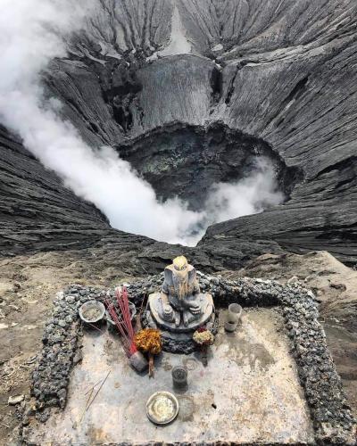 या ज्वालामुखीची आश्चर्यजनक बाब म्हणजे याच्या टोकावर एक गणेसाचं मंदिर आहे. असे मानले जाते की, या गणेशामुळेचे येथील लोक सुरक्षित आहेत.