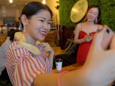 या कॅफेमध्ये अनेकप्रकारचे साप आहेत. सुरुवातीला काही लोक सापांसोबत बसण्यास घाबरतात पण हळूहळू त्यांच्यासोबत ते अॅडजस्ट करतात. खास गोष्ट म्हणजे या कॅफेमध्ये एन्ट्री फ्रि आहे. इथे येणाऱ्या लोकांचं म्हणनं आहे की, हा कॅफे वेगळा आहे. येथील जीन खूप सुंदर आहेत.