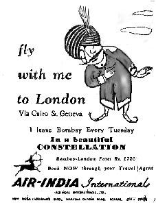 या प्रवासासाठी 03 जून 1948 ला टाइम्स ऑफ इंडियाने दोन कॉलम आणि 15 सेमीची एक जाहिरात प्रकाशित झाली होती. ज्यात महाराजाच्या लोगोसोबत प्रवाशांचं स्वागत करण्यात आलं होतं. त्यावर लिहिले होते की, दर मंगळवारी सुंदर कांसटेलेशन विमानावर तुमचं 1720 रूपयात स्वागत आहे.