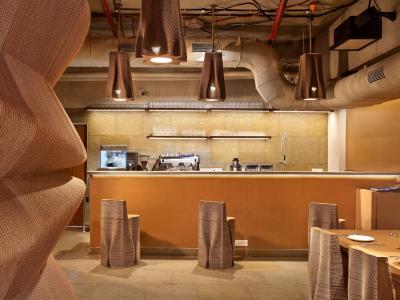 कार्डबोर्डपासून तयार करण्यात आलेल्या या कॅफेची अनेक वैशिष्ट्य आहेत.