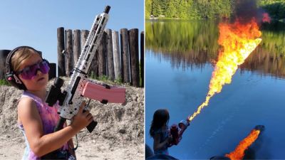 ही आहे 8 वर्षांची ऑटम फ्राई. रायफल, हँडगन आणि फ्लेम थ्रोअरसारखी शस्त्रं अगदी लिलया हाताळताना ती यूट्यूब चॅनेलवर दिसते. तिचे लाखो फॉलोअर्स आणि फॅन्स आहेत.