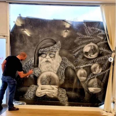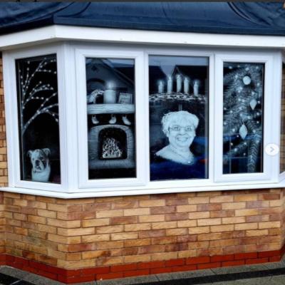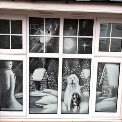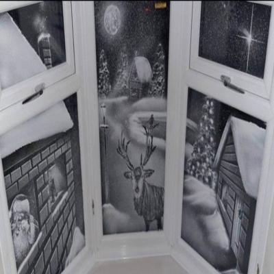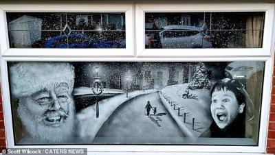 ख्रिसमसशी संबंधित चित्र आणि उत्तर ध्रुवातील सुंदर बर्फाचे दृश्य स्कॉटने स्वतःच्या हातांनी घराच्या खिडकीवर काढलेलं आहे.