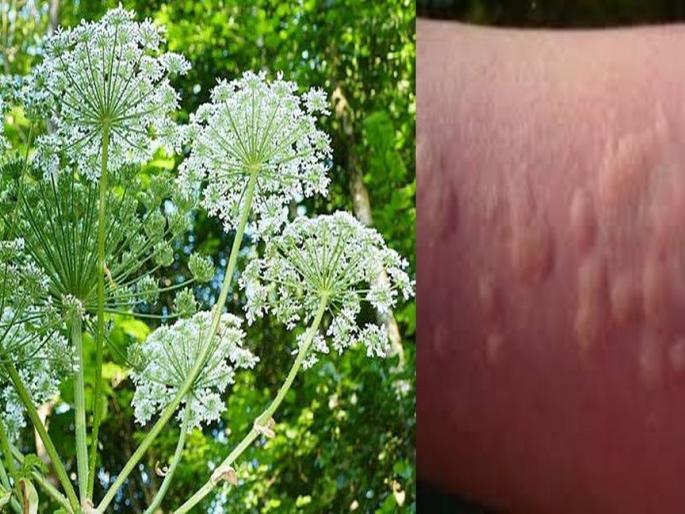 1 / 10जगभरात कोरोना व्हायरसमुळे भीतीचं वातावरण तयार झालं आहे. पण ब्रिटनमध्ये कोरोना व्यतिरिक्त एका झाडाची जोरदार चर्चा होत आहे. या झाडाची दहशत पसरली आहे. तुमचा विश्वास बसणार नाही पण या झाडाला हात लावल्यामुळे शरीराला जळल्याप्रमाणे व्रण येतात.2 / 10इतकंच नाही तर या झाडाच्या संपर्कात आल्यामुळे डोळ्यांवरसुद्धा परिणाम होतो. साधारणपणे उन्हाळ्याच्या दिवसात हे झाडं ब्रिटनच्या वेगवेगळ्या भागात दिसून येतं. सध्या लॉकडाऊन सुरू असल्यामुळे वातावरणातील प्रदूषण कमी झालं आहे. म्हणून या झाडांची संख्या वाढली आहे. 3 / 10या झाडाला जाइंट हॉगवीड (हेराक्लेम मेंटेगेजियम) नावाने ओळखलं जातं. दिसायला हे झाडं खूपचं सुंदर पांढरा रंग असलेल्या फुलांनी बहरलेलं दिसतं. हे झाडं पाहिल्यानंतर कोणालाही हात लावण्याचा मोह होईल. पण मोहात पडून स्पर्श करणं घातक ठरू शकतं. 4 / 10माध्यमांनी दिलेल्या माहितीनुसार गेल्या महिन्याभरात लहान मुलांनी आणि मोठ्या माणसांनी सुद्धा या झाडाला स्पर्श केल्याच्या शेकडो घटना समोर आल्या आहेत. कारण दिसायला मनमोहक आणि सुंदर असल्यामुळे लोक या झाडाच्या फुलांना स्पर्श करायला जातात. 5 / 10ब्रिटनमध्ये आढळून येत असलेल्या सर्वच झाडाझुडूपांमध्ये हे झाड सगळ्यात घातक आहे. या झाडाला स्पर्श केल्यानंतर या झाडातील घातक पदार्थ शरीरात प्रवेश करतात. त्यामुळे त्वचेवर गंभीर परिणाम दिसून येतो. 6 / 10ब्रिटनमध्ये आढळून येत असलेल्या सर्वच झाडाझुडूपांमध्ये हे झाड सगळ्यात घातक आहे. या झाडाला स्पर्श केल्यानंतर या झाडातील घातक पदार्थ शरीरात प्रवेश करतात. त्यामुळे त्वचेवर गंभीर परिणाम दिसून येतो. या झाडामध्ये अनेक जीवघेणे केमिकल्स दिसून येतात. यांतील प्रमुख फोटोसेंसिटीसिंग फॉरनान्कोमेरियन हे केमिकल आहे. या केमिकल्सचा मानवी शरीराशी संपर्क होताच त्वचा जळते. त्यामुळे त्वचेच्या पेशींचं नुकसान होतं. 7 / 10या झाडाच्या फुलाचा एखाद्या माणसांच्या डोळ्याशी संपर्क आल्यास दृष्टी सुद्धा जाण्याची शक्यता असते. या झाडाशी त्वचेचा संपर्क आल्यानंतर डॉक्टर शरीराच्या त्या भागाला नेहमी झाकून ठेवण्याचा सल्ला देतात. कारण सुर्याची किरण त्वचेच्या इन्फेक्टेड भागावर पडल्यास जास्त वेदना होण्याची शक्यता असते. 8 / 10. रॉयल हॉर्टीकल्चर सोसायटीतील तज्ञांनी सांगितले की गेल्या काही दिवसात या झाडांची वाढ झालेली अनेक देशांमध्ये दिसून आली आहेत. लोकांना या झाडामुळे इजा पोहोचल्याच्या अनेक घटना घडल्या आहेत. 9 / 10(Image credit-Daily mail, Daily mirror, Daily express)10 / 10(Image credit-Daily mail, Daily mirror, Daily express)