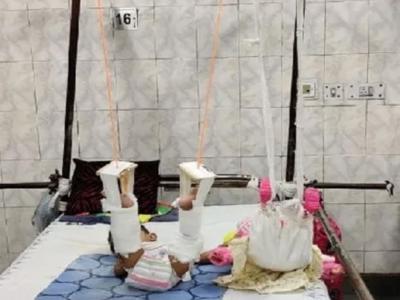 चिमुकलीच्या पायाला प्लास्टर करून दोन्ही पाय एका दोरीच्या सहाय्याने वरच्या बाजूला बांधण्यात आलेत. मात्र तिच्या बेडवर ती एकटीच नाही तर तिच्या बाहुलीला तिच्यासोबत तसे बांधण्यात आलं आहे. तिच्यावर उपचार करणाऱ्या डॉक्टरांनी लढविलेली शक्कल पाहून सगळेच चकीत होतात.