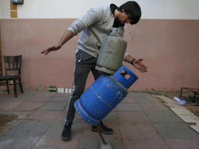 एवढेच नाही गॅसने भरलेल्या दोन सिलिंडरना एका छोट्या पाईपवर वाकडे तिकडे उभे करून दाखवले आहे.