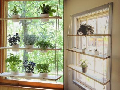 झाडांच्या छोट्या कुंड्या ठेवण्यासाठी हँगिंग शेल्फचा वापर केला जातो.