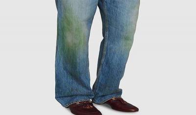 प्रसिद्ध इटालियन ब्रॅन्डच्या या जीन्सवर पायांच्या आजूबाजूला गवताचे डाग दिसत आहेत. ही जीन्स तशीच तयार करण्यात आली आहे.