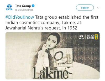 आजपासून ७० वर्षांपूर्वीच म्हणजेच १९५२ मध्ये लॅक्मे हा ब्रँड लाँच करण्यात आला. याचं श्रेय जातं ते म्हणजे जेआरडी टाटा यांना. १९५० पर्यंत महिला होम ब्युटी प्रोडक्ट्स तयार करायच्या आणि त्यातच त्यांचं काम चालत होतं. ज्यांना शक्य होतं, ते बाहेरील देशातून ब्युटी प्रोडक्ट्स मागवत होते.
