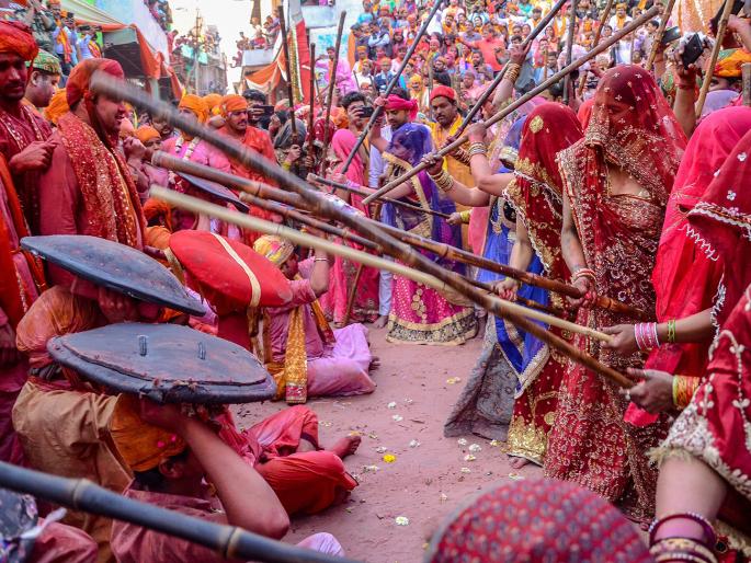 Holi 2019 : 'लाठीमार होळी'...महिला लाठीने पुरुषांना मारतात