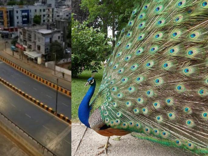 1 / 11कोरोनाचा वाढता प्रभाव रोखण्यासाठी सर्वत्र लॉकडाऊनची घोषणा करण्यात आली आहे. त्यामुळे सगळयाच नागरीकांना घरी बसण्याशिवाय कोणताही पर्याय उरलेला नाही. रस्त्यावर अत्यावश्यक सेवा वगळता कोणतीही वाहनं नाही. त्यामुळे सामसुम वातावरण आहे.2 / 11अशी शांत सामसुम मुंबई तुम्ही या आधी कधीही पाहिली नसेल.नेहमीच माणसांनी गजबजलेली मुंबई सध्या शांत झाली आहे. अशा परिस्थीत निर्सग आपलं वेगळचं रुप सगळ्यांनाच दाखवत आहे. 3 / 11तुमचा विश्वास बसणार नाही. पण मुंबईच्या रस्त्यांवर चक्क मोर दृष्टीस पडले आहेत. आज आम्ही त्याच मोरांचे फोटो तुम्हाला दाखवणार आहोत.4 / 11मुंबईतल्या रतन टाटा इन्सिटट्यूट, बाबुलनाथ मंदीराजवळ, पारशी कॉलनी या परिसरात आज मोरांच दर्शन घडून आलं आहे.5 / 11 हे नयनरम्य दृश्य मनाला आनंद देणारं आहे.6 / 11मोठ्या संख्येनं मोर दिसण्याचा हा क्षण कदाचित पहिल्यांदाच आला असेल. सक्तीनं लावलेल्या या लॉकडाउननं आज मुंबईकरांना सुखद धक्का दिला.7 / 11 इतकंच नाही तर सध्या मुंबईमध्ये सकाळच्या वेळी पक्ष्यांचे आवाज ऐकाला मिळत आहेत.8 / 11मुंबईचं हे सुंदर रुप तुम्ही या आधी कधीही पाहिले नसतील.9 / 11सर्वत्र शांततापूर्ण वातावरण आहे.10 / 11सर्वत्र शांततापूर्ण वातावरण आहे.11 / 11सर्वत्र शांततापूर्ण वातावरण आहे.
