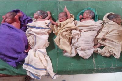 सूरतगंजमधील कुतलूपूर येथील अनिता गौतम (वय ३२) यांनी पाच मुलांना जन्म दिला. त्यांचे पती कुंदन गौतम यांनी सांगितले की, पत्नी अनिता सकाळी बाथरूममध्ये गेली होती तिथे वेदना झाल्यानंतर एका मुलाचा जन्म झाला. तात्काळ आशासेविकांना बोलावून रुग्णवाहिकेच्या मदतीने सूरतगंज येथील सीएचसी रुग्णालयात आणलं.