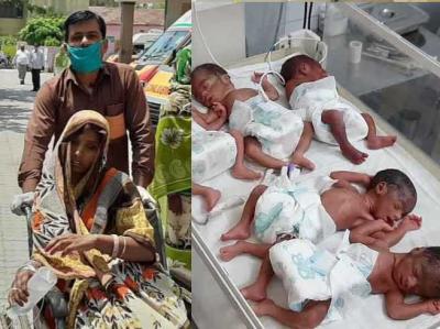 सकाळी आठ वाजता तेथे चार मुलांचा जन्म झाला. डॉक्टरांनी तातडीने पाच मुले व पत्नीला जिल्हा महिला रुग्णालयात जाण्यास सांगितले.