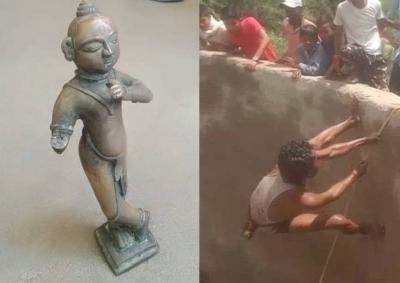 लाखो रुपये किंमतीची भगवान श्रीकृष्णाची मूर्ती सापडली; विहिरीच्या तळातून बाहेर काढण्यात यश