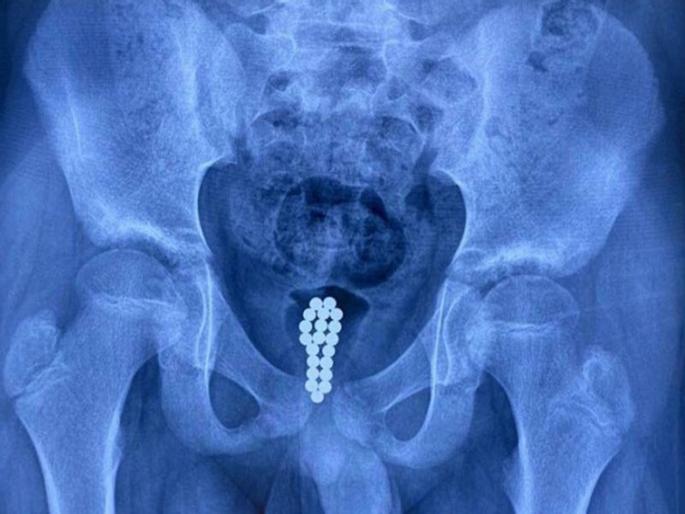 1 / 9जगभरातून नेहमीच अशा घटना समोर येत असतात ज्या वाचून लोक हैराण होतात. यातील काही घटनांवर तर विश्वासही बसत नाही. नुकतीच चीनमधून एक अशी घटना समोर आली ज्याने डॉक्टरही हैराण झाले.2 / 9डॉक्टरांनी एका व्यक्तीच्या प्रायव्हेट पार्टमधून लोह चुंबकाची चेन काढली. यात २९ मॅग्नेटिक बॉल्स होते. डॉक्टरांनी फार मेहनतीनंतर या व्यक्तीच्या शरीरातून ही चेन बाहेर काढली.3 / 9याचे फोटोही सोशल मीडियात व्हायरल झाले आहेत. या व्यक्तीच्या शरीरात जेव्हा डॉक्टरांनी ही चेन पाहिली तेव्हा तेही हैराण झाले. कारण त्यांनीही अशी केस कधी पाहिली नव्हती.4 / 9ही घटना चीनच्या शांक्सीमधून समोर आली आहे. इथे राहणाऱ्या एका व्यक्तीला सीटी स्कॅननंतर लगेट हॉस्पिटलमध्ये भरती करण्यात आलं. कारण डॉक्टरांना सीटी स्कॅनमध्ये काही मॅग्नेटिक बॉल्स दिसले.5 / 9शांक्सीतील पीपल्स हॉस्पिटलमध्ये काम करणारे यूरोलॉजिस्ट क्यू ली मिंग यांनी एका न्यूज चॅनेलला दिलेल्या मुलाखतीत सांगितले की, या व्यक्तीच्या ब्लॅडरमध्ये अनेक मॅग्नेटिक बॉल्स होते.6 / 9हे बॉल्स सर्जरी करून बाहेर काढण्यात आलेत. डॉक्टरांना ब्लॅडरमधून हे मॅग्नेटिक बॉल्स बाहेर काढण्यासाठी बराच वेळ लागला.7 / 9जेव्हा डॉक्टरांनी व्यक्तीला विचारले तर त्याने सांगितले की, त्याने एक-एक करून हे बॉल्स प्रायव्हेट पार्टमध्ये आत टाकले होते. नंतर हे बॉल्स आत जाऊन एकमेकांना चिकटले होते.8 / 9या व्यक्तीने सांगितले की, हे मॅग्नेटिक बॉल्स प्रायव्हेट पार्टच्या आत स्लिप झाले. त्याला अजिबात अंदाज नव्हता की, हा अनुभव इतका वेदनादायी ठरेल.9 / 9हे मॅग्नेटिक बॉल्स आत टाकल्यावर १० दिवसांनी व्यक्तीच्या प्रायव्हेट पार्टमधून रक्त येत होतं. त्यानंतर तो लगेच हॉस्पिटलमध्ये गेला. तेव्हा डॉक्टरांना सीटी स्कॅनमध्ये हे बॉल्स दिसले.
