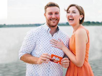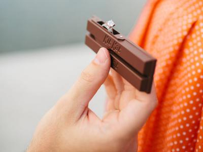इवान विल्ट नावाच्या तरुणानं हॅले बर्ड नावाच्या त्याच्या मैत्रिणीला प्रपोज करण्यासाठी किटकॅटचा वापर केला.