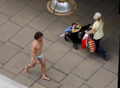 त्यानं गुप्तांग झाकण्यासाठी मास्क लावला होता. त्या व्यतिरिक्त त्याच्या शरीरावर कपडे नव्हते. ही व्यक्ती रस्त्यावर अगदी सहजपणे चालत होती.
