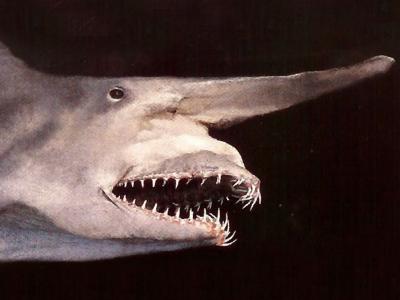 गॉबलिन शार्क. ऑस्ट्रेलियाच्या समुद्रातील हा शार्क मासा जगातला सर्वात जुन्या जिवंत प्रजातीपैकी एक आहे. या शार्कचा मनुष्यांना धोका नसतो. कारण हा शार्क केवळ छोटे मासे खातो.