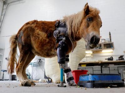 व्हर्जिनियातील अँजेल मेरी या तीन वर्षीय घोडीचा पुढील एक पाय निकामी झाला. त्यामुळे तिच्यावर उपचार करुन कृत्रिम पाय बसवण्यात आले.