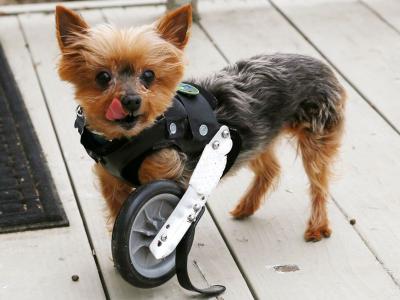 यॉर्कशायरमध्ये राहणाऱ्या होप नावाच्या कुत्र्याच्या पुढील पायाजवळ चाक लावण्यात आलं आहे. पायामध्ये ताकद असल्यानं होपसाठी ही व्यवस्था करण्यात आली आहे.