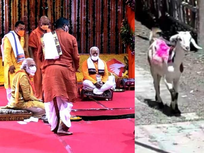 पंतप्रधान नरेंद्र मोदी भूमीपूजन करत असताना दालनाजवळ २ बकऱ्या पोहोचल्या, तेव्हा...