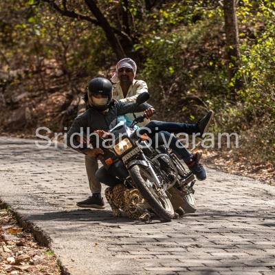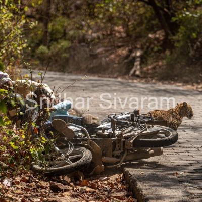 फोटोग्राफर श्रीधर शिवाराम आपला गाइड बॉबीसोबत जंगलात फोटो काढण्यासाठी गेले होते. पण यादरम्यान एका बिबट्याचा टक्कर एका बाइकसोबत झाली. (All Image Credit : Shridhar Shivaram Instagram)