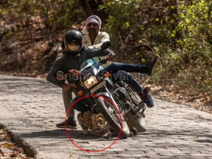 आरारारा खतरनाक! बाइकवरून तिघे निवांत जात होते, समोर आला बिबट्या; पुढे जे झालं ते फोटोत बघाच....