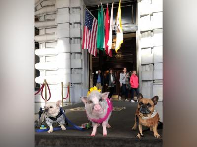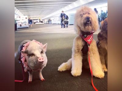 प्रवाश्यांचे मनोरंजन करण्यासाठी सन फ्रॅन्सिस्को या विमानतळावर चक्क डुकराच आगमन झाले आहे.