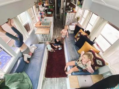 साधारण २७० स्क्वायर फूटाच्या बसला एका लक्झरी घरात बदलण्यासाठी ३५ हजार ड़ॉलर म्हणजे २५ लाख रूपयांपेक्षा जास्त खर्च आला. या बसमध्ये राहणारे पती जेफ आणि पत्नी एना बॅटरटन, त्यांची पाच मुलं, दोन कुत्री आणि एक मांजर आहे.