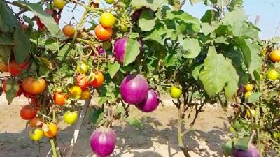 भारीच! एकाच झाडाला लागताहेत दोन भाज्या; बटाट्याच्या झाडाला वांगी अन् वांग्याच्या झाडाला टॉमॅटो