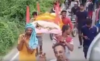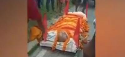 १०४ वर्षीय भोला यादव यांचा रविवारी मृत्यू झाला होता. त्यानंतर त्यांच्या मुलाने आणि कुटुंबीयांनी वाजतगाजत त्यांची अंत्ययात्रा काढली. या अंत्ययात्रेचा व्हिडीओ बनवून कुणीतरी तो व्हायरल केला. त्यानंतर लोक वेगवेगळ्या कॅप्शन देऊन हा व्हिडीओ शेअर करत आहेत.