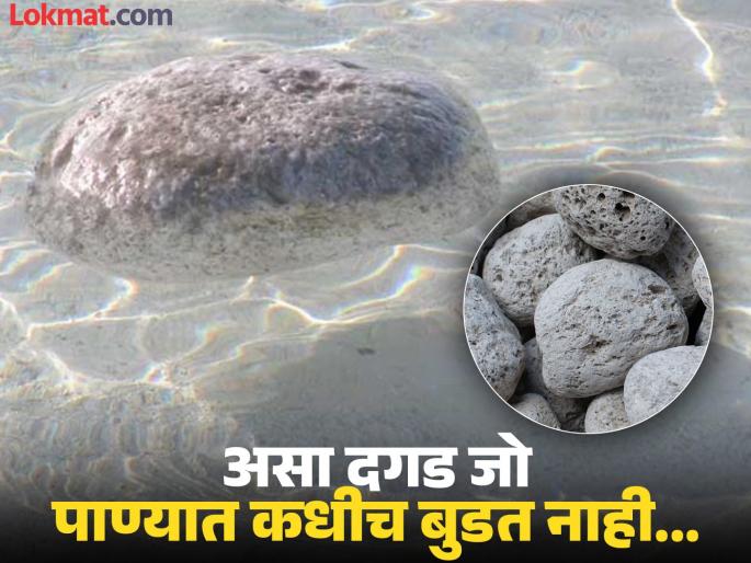 1 / 7Pumice Stone : पृथ्वीवर अशा अनेक गोष्टी आहेत ज्यांची कल्पना आजही लोकांना नाही. या गोष्टी अशा असतात ज्याबाबत माहिती समोर आल्यावर संशोधकही हैराण होतात. तुम्ही बालपणी एक गोष्ट ऐकली असेल. ज्यात एक कावळा तहान लागल्यानंतर एका मडक्यात थोडं पाणी टाकल्यावर त्यात खडे टाकून पाणी वर आणतो आणि आपली तहान भागवतो. 2 / 7सामान्यपणे कोणतेही दगड पाण्यात बुडतात. पण अनेकांना हे माहीत नाही की, जगात एक असाही दगड आहे जो पाण्यात बुडण्याऐवजी पाण्यावर तरंगतो. त्याबाबतच आज जाणून घेणार आहोत.3 / 7सामान्यपणे कोणत्याही जड वस्तू किंवा दगड पाण्यात बुडतात. पण प्यूमिस स्टोन (Pumice Stone) हा नियम तोडतो. कारण तो पाण्यात बुडत नाही.4 / 7हा दगड फार खरदळ, छिद्र असलेला आणि स्पंजसारखा असतो. याचं वजन इतर दगडांच्या तुलनेत फार कमी असतं. ज्यामुळे पाण्यात बुडण्याऐवजी तो पाण्यावर तरंगतो.5 / 7 या दगडावर छोटे छोटे हवा भरलेले छिद्र असतात. ज्यामुळे ते हलके होतात आणि पाण्यावर तरंगतात. जेव्हा ज्वालामुखीचा उद्रेक होतो, तेव्हा गरम लाव्हारस वेगानं थंड होता आणि त्यातील गॅस अडकून दगडांमध्ये छोटे छोटे छिद्र निर्माण करतो.6 / 7याच प्रक्रियेमुळे प्यूमिस स्टोन तयार होतात. जे नंतर समुद्रात सापडतात. या दगडांचा वापर सौंदर्य प्रसाधने, बांधकाम आणि स्क्रबिंगसाठी केला जातो.7 / 7जगातील लोकांना या खास दगडाबाबत फार कमी माहीत असतं. त्यामुळे यापुढे एखादा असा दगड पाण्यात टाकल्यावर अचंबित होऊ नका. हा तोच रहस्यमय प्यूमिस स्टोन असू शकतो.
