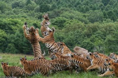 ही घटना आहे २९ जुलैची. चीनच्या हार्बिन येथील सायबेरियन टायगर पार्कच्या हेंगदाझी फेलाइन ब्रीडिंग सेंटरमधील वाघांमधे कुणीतरी एक कोंबडी सोडली. आणि सुरू झाला तिला पकडण्याचा थरार....