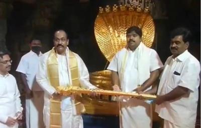 याआधी तामिळनाडूच्या टेनीतील प्रसिद्ध कपडे व्यापारी थंगा दोराई यांनी २०१८ मध्ये तिरूपती मंदिरात १.७५ कोटी रूपयांची सोन्याची तलवार दान केली होती. ही तलवार तयार करायला सहा किलो सोनं लागलं होतं.