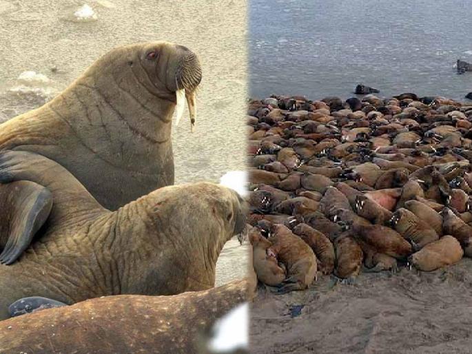 1 / 8जगभरातील थंड परिसरात राहणारे प्राणी आता निवारा शोधण्यासाठी सर्वत्र संचार करत आहेत. दरम्यान रशियन वैज्ञानिकांनी वॉलरस (Walrus) या प्राण्यांचा शोध घेतला आहे. जे आपल्या मूळ निवासापासून बराचवेळ लांब होते. या कॉलनीमध्ये जवळपास ३ हजार वॉलरस उपस्थित आहेत. वॉलरस प्राणी अनेक कारणांपासून आपल्या मूळ निवासापासून लांब आले आहेत. 2 / 8रशियन वैज्ञानिकांना दिसून आलं की, ३००० वॉलरस रशियाच्या समुद्र किनारी आणि शांत वातावरणात उपस्थित होते. सध्या त्यांच्या प्रजननाचा कालावधी आहे. साधारणपणे या कार्यासाठी हे प्राणी पोहत समुद्रातील बर्फाच्या तुकड्यापर्यंत पोहोचतात. यावेळी हे प्राणी ६००० किलोमीटर अंतर पार करून आले आहेत.3 / 8संशोधक एलेक्जेंडर सोकोलोव यांनी सांगितले की, हा अद्भूत नजारा आहे. प्रजननासाठी हे जीव समुद्रात जातात पण यावेळी समुद्र किनारी आले आहेत. समुद्रात बर्फाचे तुकडे शिल्लक नसल्यामुळे या प्राण्यांच्या जिवितावर प्रश्न उपस्थित होत आहे. या कॉलनीमध्ये नर, मादी यांसोबत पिल्लू सुद्धा आहेत. 4 / 8एलेक्जेंडर यांनी पुढे सांगितले की, या प्राण्यांचा अभ्यास करण्यासाठी ही स्थिती प्रयोगशाळेप्रमाणेच आहे. इंटरनॅशनल युनियन फॉर कंजरवेशन ऑफ नेचरने २००६ मध्ये वॉलरस या प्राण्याला लुप्त होत असलेल्या प्रजातीमध्ये समावेश करण्याचा निर्णय घेतला होता. जगभरातील लोकसंख्या एकूण १२,५०० च्या आसपास आहे.5 / 8या प्राण्यांच्या शिकारीवर आंतरराष्ट्रीय स्तरावर बंदी घालण्यात आली आहे. तरीसुद्धा अनेक ठिकाणी गुप्तपणे शिकार केली जाते. या प्राण्यांच्या दात आणि चामड्याचा अवैध व्यवहार केला जातो. 6 / 8मॅरीन मॅमल रिसर्च एंड एक्सपेडिशन सेंटरचे वैज्ञानिक आंद्रेई बोल्टूनोव यांनी सांगितले की अटलांटिक वॉलरसची लोकसंख्या वाढत असून वास्तव्यासाठी जागेची कमतरता भासत आहे. 7 / 8मानवी कृत्यांमुळे थंड प्रदेशातील बर्फ वितळण्याच्या मार्गावर आहे. परिणामी त्यांना इतर ठिकाणी वास्तव्यास जावे लागत आहे. मागच्या काही दशकात आईस फ्री वातावरणाचा काळ वाढत चालला आहे. त्यामुळे वॉलरस प्राण्यांना जीवितासाठी संघर्ष करावा लागत आहे. 8 / 8वैज्ञानिकांनी वॉलरसचे काही डीएनए घेतले असून कॅलिफोर्नियामध्ये असलेल्या वॉलरसना सॅटेलाईट टॅगिंग केलं आहे. जेणेकरून त्यांच्या हालचालींबाबत माहिती घेता येऊ शकते. त्यामुळे वॉलरसच्या व्यवहारांमध्ये होत असलेल्या बदलांचे परिक्षण केले जाऊ शकेल.