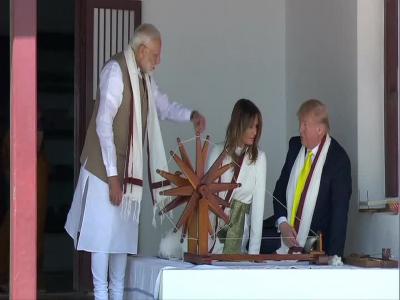 डोनाल्ड ट्रम्प आणि त्यांच्या पत्नी मेलानिया आणि पंतप्रधान नरेंद्र मोदी यांनी आधी साबरमती येथील आश्रमाला भेट दिली.