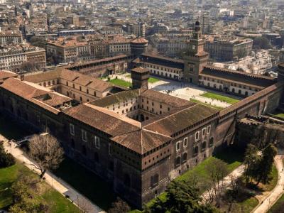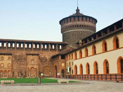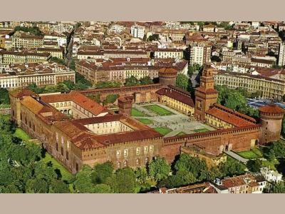 स्फोर्जा किल्ल्याचं निर्माण १३५८ मध्ये सुरू झालं होतं. पण वेळोवेळी हा किल्ला नष्ट करण्यात आला आणि पुन्हा बांधण्यात आला. आज किल्ल्याचा केवळ सहावा भाग शिल्लक आहे. १४०० मध्ये याला नष्ट केल्यानंतर मिलानचे ड्यूक फ्रांसेस्को स्फोर्जा यांनी हा पुन्हा बांधला. त्यावेळी लिओनार्डो दा विंची यांच्यासारख्या महान कलाकाराला किल्ल्याची सजावट आणि निर्माण कार्यात सहभागी करून घेण्यात आलं होतं.