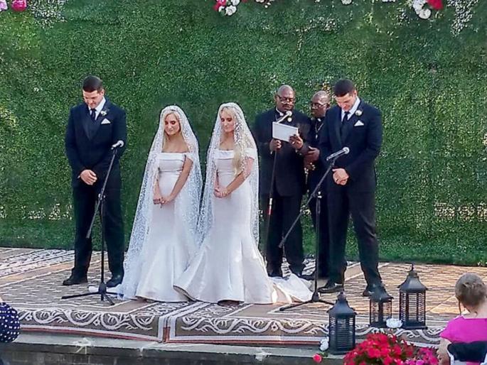 1 / 5ओहियोत राहणाऱ्या ३२ वर्षांच्या ब्रिटनी आणि ब्रायना या जुळ्या बहिणींनी जॉश आणि जेरेमी नावाच्या जुळ्या भावांसोबत लग्न केलं आहे. 2 / 5जुळ्या बहिणी असल्यानं जुळ्या भावांसोबत लग्न करायचं, असं ब्रिटनी आणि ब्रायनाचं स्वप्न होतं. त्यांचं हे स्वप्न अखेर पूर्ण झालं. आयुष्यात घडलेली ही घटना अगदी परीकथेप्रमाणे असल्याचं दोघींनी सांगितलं.3 / 5आम्हाला जुळ्या भावांसोबत लग्न करायचं होतं. मात्र हे प्रत्यक्षात येण्याची शक्यता कमीच आहे, असं आम्हाला वाटू लागलं, असं दोघींनी सांगितलं. 4 / 5गेल्या शनिवारी 2018 Twins Days Festival मध्ये ब्रिटनी आणि ब्रायनानं जॉश आणि जेरेमी नावाच्या जुळ्या भावांसोबत लग्न केलं.5 / 5विशेष म्हणजे जॉश आणि जेरेमी यांनासुद्धा जुळ्या मुलींशी लग्न करण्याची इच्छा होती. अखेर त्यांचीही इच्छा पूर्ण झाली.
