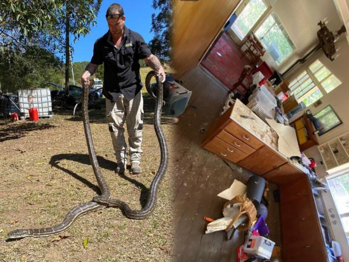 1 / 12प्राण्यांमध्ये मादीला इम्प्रेस करण्यासाठी दोन प्राणी एकमेकांशी लढताना आपण पाहिलंय. वाघही वाघिणसाठी एकमेकात भांडतात. या लढाईत जे वरचढ ठरतात मादी त्यांची होते. नुकतीच ऑस्ट्रेलियामध्ये दोन पायथन सापांची लढाई झाली. या लढाईचे फोटो समोर आले आहेत. हे दोन्ही नर अजगर एका मादीसाठी भांडत होते. (Image Credit : Brisbane North Snake Catchers and Relocation Facebook)2 / 12या लढाईत दोन्ही अजगर जखमी झाले. पण तोपर्यंत मादी तेथून पसार झाली. दोन्ही एका घराच्या सीलिंगवर लढाई करत असताना सीलिंग तोडून खाली पडले. या घराच्या मालकाने एनिमल रेस्क्यू टीमला घरी बोलवलं. दोन्ही साप पकडून नेण्यात आले.3 / 12newsweek.com वेबसाईटने दिलेल्या वृत्तानुसार, ही घटना ब्रिस्बेनमधील आहे. इथे राहणारा डेविड टॅट आपल्या घरी आराम करत होता. तेव्हाच अचानक किचनमधून सीलिंग पडण्याचा आवाज आला. जेव्हा तो तिथे पोहोचला तिथे दोन अजगर आपसात भांडत असल्याचे दिसले.4 / 12हे दोन्ही साप किचनमधील टेबलवर आपसात भिडले होते. दोघेही एकमेकांना चावत होते. दोघेही भांडताना या व्यक्तीच्या बेडरूम आणि लिव्हिंग रूममध्ये पोहोचले होते.5 / 12दोन्ही साप फारच मोठे होते. यातील एक लांबी ९ फूट ५ इंच तर दुसऱ्याची ८ फूट २ इंच होती. हे दोन्ही साप पकडण्यासाठी स्वीवन ब्राउनला बोलवण्यात आलं. त्यानंतर हे दोन्ही साप जंगलात सोडण्यात आले.6 / 12स्टीवनने सांगितले की, हे दोन्ही अजगर एका मादीसाठी भांडत होते. लढाई दरम्यान दोघेही सीलिंग तोडून घरात पडले होते. पण या घटनेतील सर्वात हैराण करणारी बाब म्हणजे या दोन सापांच्या भांडणात मादी कुठे गायब झाली काही पत्ता लागला नाही.7 / 12स्टीवनने सांगितले की, दोन्ही अजगर इतके मोठे होते की, त्यांना पकडण्यासाठीही वेळ लागला. दोघांमध्ये बराचवेळ संघर्ष सुरू होता. यादरम्यान मादी तिथून पसार झाली.8 / 12सापांना घरी पोहोचवून स्वीटनने टॅटच्या घराचा शोध घेतला. त्याने तिथे सापांचा घर शोधण्याचा प्रयत्न केला. पण ते काही सापडलं नाही. छत आणि सीलिंगवरही त्यांना तिसऱ्या सापाचा पत्ता लागला नाही.9 / 12स्टीवननुसार, टॅट फारच नशीबवान होता की, अजगरांनी त्यांना काही नुकसान पोहोचवलं नाही. सामान्यपणे मादीसाठी लढताना अजगर फारच आक्रामक होतात. जवळ आलेल्या कुणालाही ते नुकसान पोहोचवू शकतात.10 / 12ऑस्ट्रेलियात साप खूप जास्त आढळतात. इथे ऑक्टोबर आणि नोव्हेंबरमध्ये सापांचा प्रजननाचा काळ असतो. अशात साप बाहेर येऊन मादी आणि खाण्याचा शोधात बाहेर पडतात.11 / 12ऑस्ट्रेलियन रेप्टाइल पार्कनुसार, ऑस्ट्रेलियात दरवर्षी तीन हजार साप कापले जाण्याच्या घटना समोर येतात. विषारी सापामुळे व्यक्तीचे ब्लड सेल्स बेकार होतात. शरीरात क्लॉट्स पडतात. अशात अनेक मृत्यू होतात.12 / 12ऑस्ट्रेलियन रेप्टाइल पार्कनुसार, ऑस्ट्रेलियात दरवर्षी तीन हजा