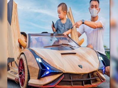 Photos : मुलाने मागितली होती खेळण्यातील कार, वडिलाने बनवली लाकडाची Lamborghini कार