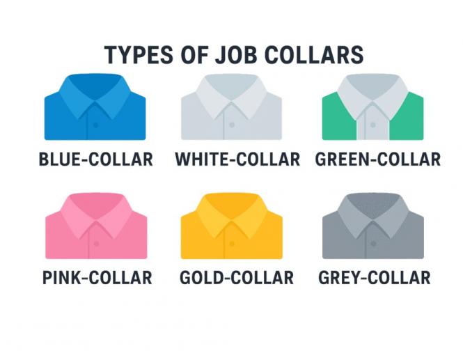 एखाद्या खासप्रकारच्या नोकरीसाठी व्हाइट कॉलर असा शब्द वापरतात, तसे पिंक कॉलर, ब्लू कॉलर, व्हाइट कॉलर आणि ग्रे कॉलर जॉब असेही शब्द आहेत. त्यांचा अर्थ काय असतो?