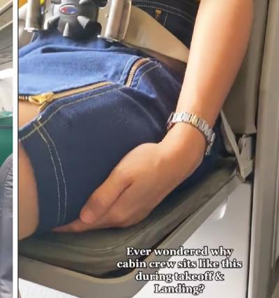 प्रत्येक एअरलाईन्सचे आपले स्वत:चे सेफ्टी प्रोटोकॉल असतात. जे फॉलो करणं एअर होस्टेससाठी गरजेचं असतं. या नियमांनुसार, त्यांना टेकऑफ आणि लॅंडिंगवेळी सीटवर बसून हात मांड्यांखाली दाबून बसावं लागतं.