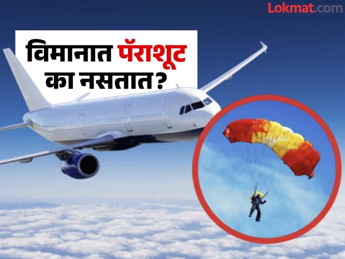 1 / 8Airplane Interesting Facts : काही सिनेमांमध्ये आपण पाहत असतो की, जेव्हा सैन्याच्या एखाद्या फायटर जेटला आग लागते किंवा एखादी दुर्घटना घडते तेव्हा पायलट एका झटक्यात पॅराशूटने बाहेर निघतो. अशात कुणाच्याही मनात असा प्रश्न येऊ शकतो की, पॅसेंजर प्लेनमध्ये म्हणजेच प्रवासी विमानांमध्ये पॅराशूटची सुविधा का दिली जात नाही? शेकडो प्रवासी असलेल्या विमानात जर सीटखाली पॅराशूट दिले तर इमरजन्सीमध्ये लोक आपला जीव वाचवू शकतात, असाही विचार येऊ शकतो. त्यामुळे विमानात पॅराशूट का नसतात याचं उत्तर आपण जाणून घेऊया.2 / 8मुळात फायटर जेट आणि पॅसेंजर प्लेनचं काम, त्यांचं डिझाइन आणि त्यांचा उद्देश हा वेगवेगळा असतो. सामान्यपणे फायटर जेट हे एक किंवा दोन पायलटसाठी बनवले जातात. त्यांचं काम फारच वेगळ्या स्थितीत उड्डाण घेणं असतं. तेच प्रवासी विमानं ही एकाचवेळी शेकडो प्रवाशांना सुरक्षित आणि आरामदायक पद्धतीने एका ठिकाणाहून दुसऱ्या ठिकाणी नेण्यासाठी बनवलेले असतात. 3 / 8विमानात पॅराशूट का नसतात? या प्रश्नाचं उत्तर याच फरकात दडलेलं आहे. फायटर जेटमध्ये पायलटजवळ इजेक्शन सीट असते. काही अनुचित घडलं तर पायलट सीटसहीत बाहेर पडतो आणि पॅराशूट उघडलं जातं. अर्थात यासाठी पायलटचा खास ट्रेनिंग दिलं जातं. किती उंचावरून, किती स्पीडमध्ये आणि कोणत्या दिशेने बाहेर पडायचं हे त्यांना शिकवलं जातं. 4 / 8फायटर जेटच्या पायलट्सना निर्णय काही सेकंदात निर्णय घ्यावा लागतो. तरच त्यांचा जीव वाचू शकतो. दुसरीकडे प्रवासी विमानं ही साधारणपणे ४० हजार फूटाच्या उंचीवर उडत असतात. इतक्या उंचीवर हवेत ऑक्सीजन फारच कमी असतं आणि तापमान शून्यापेक्षा खाली गेलेलं असतं. 5 / 8जर एखादा प्रवासी अचानक पॅराशूट घेऊन बाहेर उडी मारेल, तर त्याला श्वास घेण्यास अडचण येईल आणि थंडीमुळे त्याला झटकाही बसेल. खास सूट आणि ट्रेनिंगशिवाय इतक्या उंचीवर जिवंत राहणं फारच अवघड आहे. 6 / 8प्रवासी विमानांचा स्पीड ८०० ते ९०० किलोमीटर प्रति तास इतका असतो. इतक्या स्पीडमध्ये विमानातून बाहेर पडणं जीवघेणं ठरू शकतं. हवेचा दाब शरीराचं मोठं नुकसान करू शकतो. इतकंच नाही तर विमानाचं डिझाइन असं असतं की, दरवाजे किंवा खिडक्या हवेत उघडणं सोपं नसतं. 7 / 8चुकीच्या वेळी उघडल्या गेलेल्या दरवाजामुळे पूर्ण विमानाचा बॅलन्स बिघडू शकतो. एका प्रवासी विमानात १५० ते ४०० प्रवासी असतात. जर सगळ्यांसाठी पॅराशूट ठेवले गेले, तर विमानाचं वजन वाढेल. इंधनाचा खर्च वाढेल आणि उड्डाण घेणंही महाग होईल. आणखी एक मुद्दा म्हणजे प्रत्येक प्रवाशाला पॅराशूट कसं वापरायचं याचं ट्रेनिंग देणंही शक्य नाही. 8 / 8दुर्घटनेच्या स्थितीत हा उपाय जीव वाचवण्याऐवजी आणखी घातक ठरू शकतो. प्रवासी विमानांमध्ये सुरक्षेसाठी वेगवेगळ्या गो
