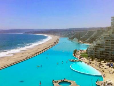 चिलीमधील जगातील सगळ्यात मोठा स्वीमिंग पूल इतका मोठा आहे की, एखाद्या विशाल तलावासारखा किंवा नदीसारखा दिसतो. या पूलजवळ उभं राहिलं तर सगळीकडे केवळ पाणीच पाणी दिसतं.