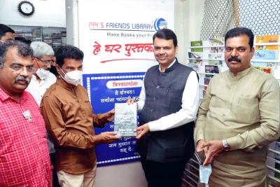 केंद्रीयमंत्री कपिल पाटील आणि आमदार रविंद्र चव्हाण यांच्यासमेवत फडणवीस यांनी या लायब्ररीला भेट दिली. त्यावेळी, ग्रंथालयाकडून त्यांना पुस्तक भेट देण्यात आले.