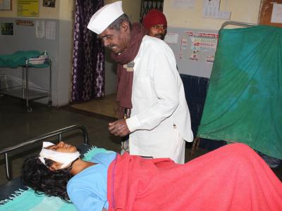 ‘माझी मम्मी कशी आहे हो बाबा...?’ अपघातात गंभीर जखमी झालेली प्राजक्ता दिनेश नागरे ही आजोबांना पाहिल्यावर त्यांच्याकडे ‘माझी मम्मी कशी आहे हो?’ अशी विचारणा करीत होती; परंतु नियतीने तिच्या मम्मीला हिरावून नेल्याचे तिलाही माहीत नव्हते. (दीपक जाधव)